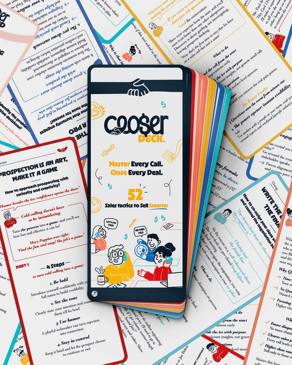 Closer Deck is both comprehensive and practical. Sales teams can easily refer to it before a meeting or during coaching sessions to adopt best practices.